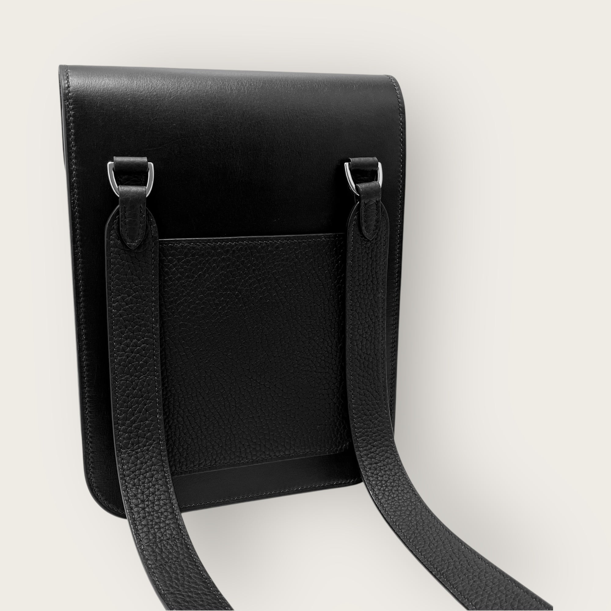 滑らかなスムースレザーと上質なシボ革を組み合わせた端正なフォルムは、都会的で洗練された印象を演出します。